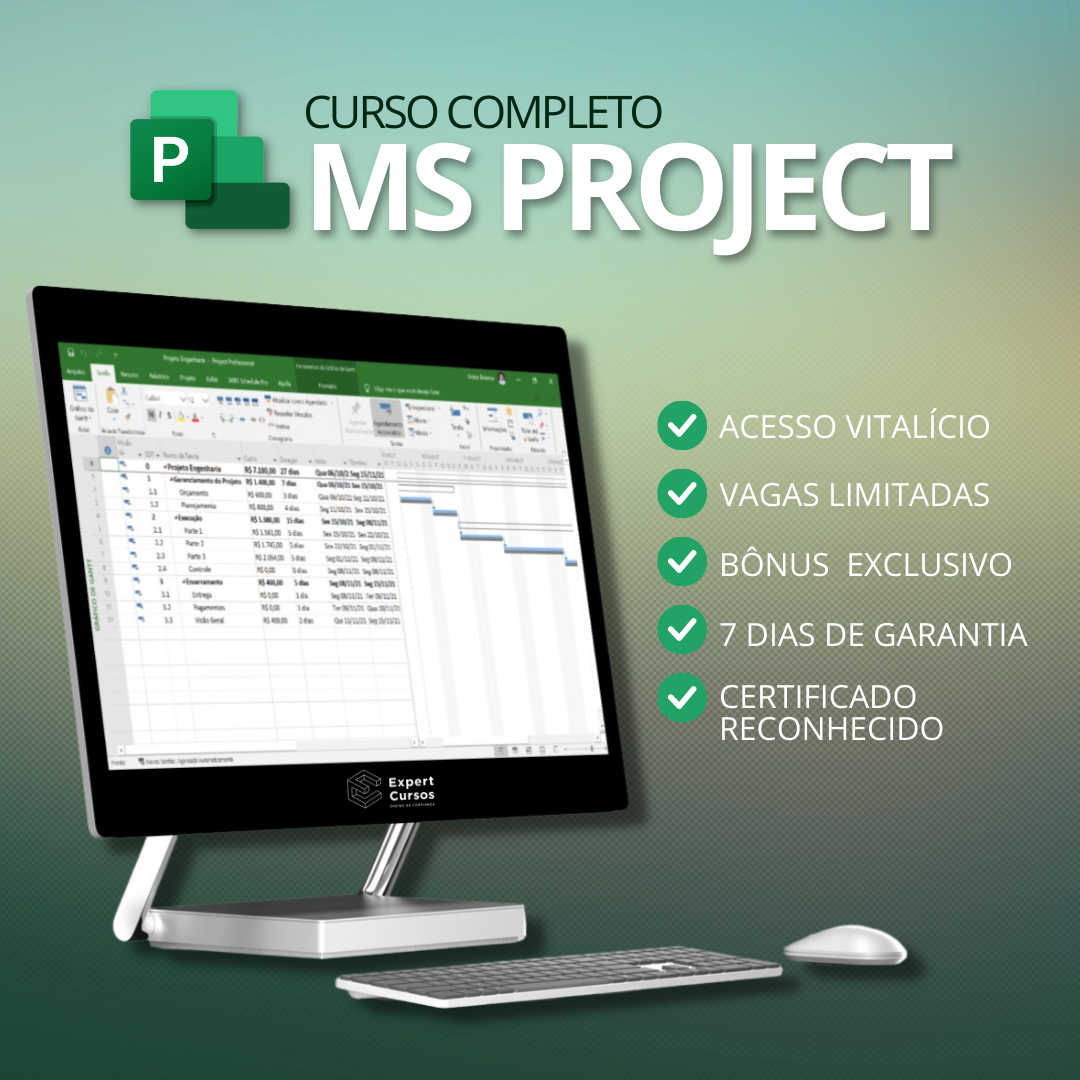 O curso de MS Project Expert conta com um certificado reconhecido e que pode ser utilizado como capacitação profissional, com carga horária de 30 horas.